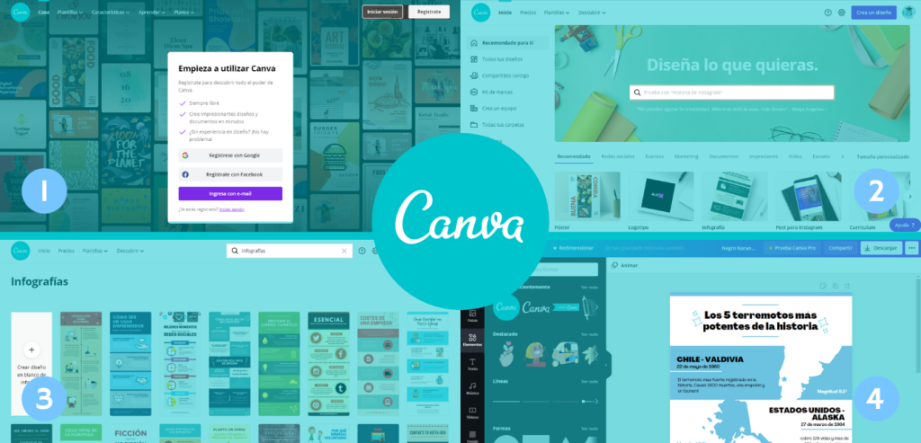 Estas en apuros lo sé, necesitas entregar una presentación, una infografía o cualquier trabajo en muy poco tiempo. Pero quieres hacer algo distinto y llamativo, ya estás cansado de usar ese aburrido Power Point con el mismo estilo de tus compañeros, pero como no tienes tiempo, la mejor opción será volver a ese programa, ¿o existe otra opción? Afortunadamente, ¡sí! la solución es Canva y no te preocupes por el tiempo, de seguro haces una súper presentación más rápido que en Power Point, porque Canva es muy sencilla. Además, ¡es gratis! si, tiene una versión de pago, pero no la necesitaras, puedes hacer cosas asombrosas sin desembolsillar un solo centavo. Así que sin más preámbulos te presento Canva, te enseño a empezar un trabajo y te de doy algunos consejos: